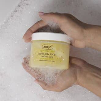 Aromatic bath jelly for gentle skin cleansing.