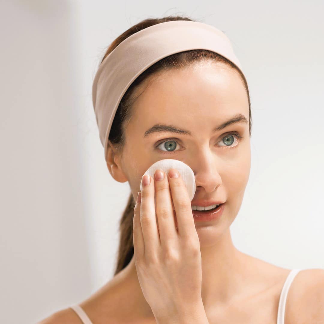 Apply the product to a cotton pad and wipe the face, closed eyes and lips. Repeat if necessary.